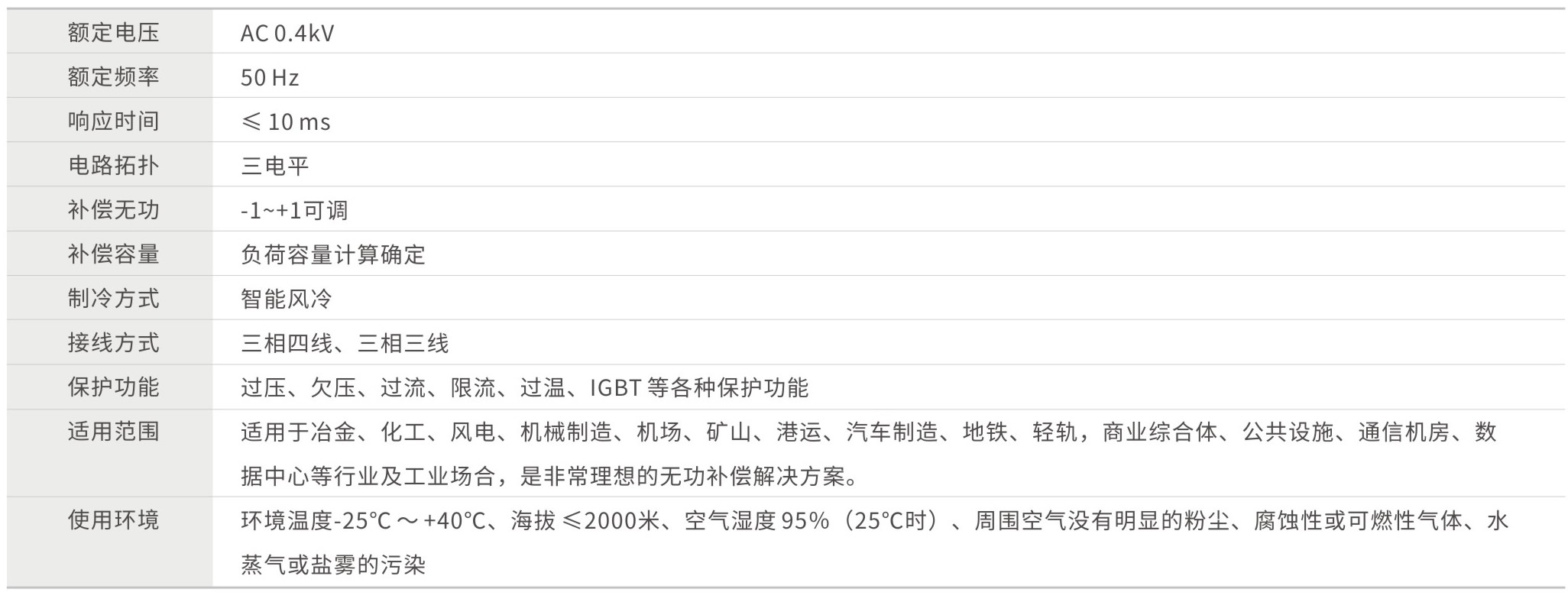 快速响应:响应速度快,对电压闪变的补偿效果好,保障系统安全;