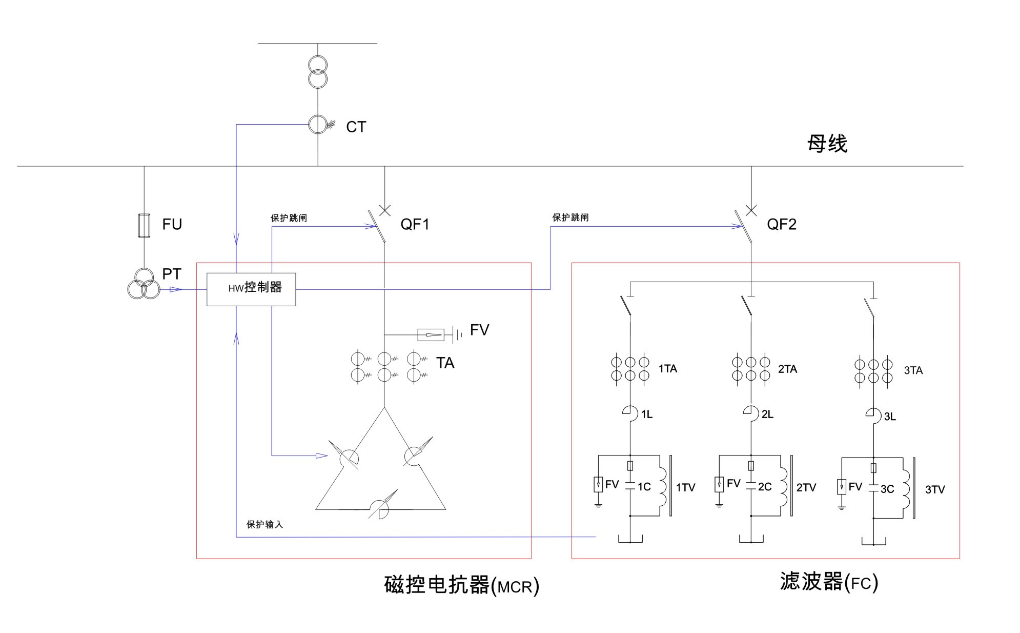 动态调节:装置电容器固定接入,通过MCR实现无功补偿容量连续动态调节,响应速度快,补偿效果好;