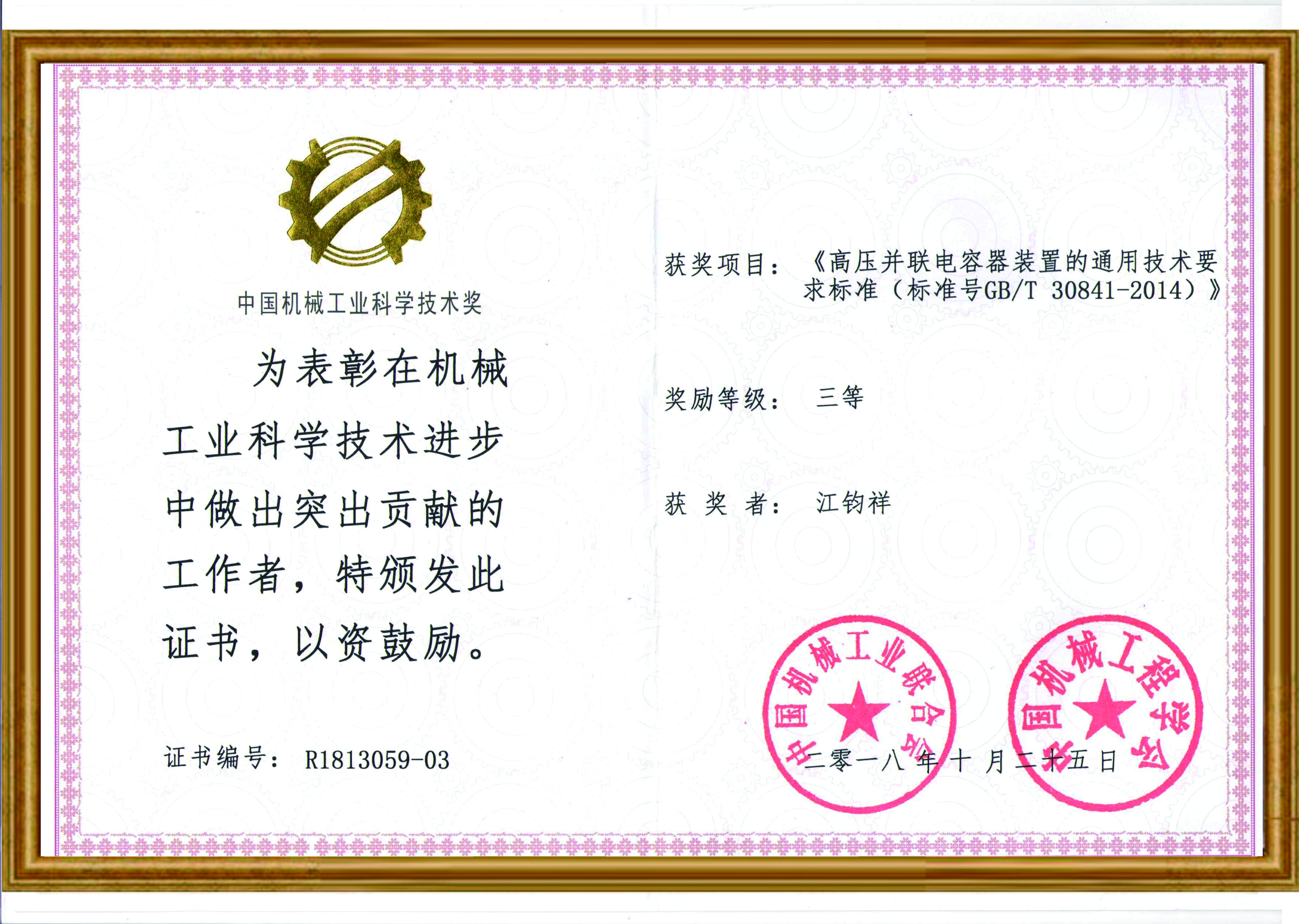 中国机械工业科学技术奖