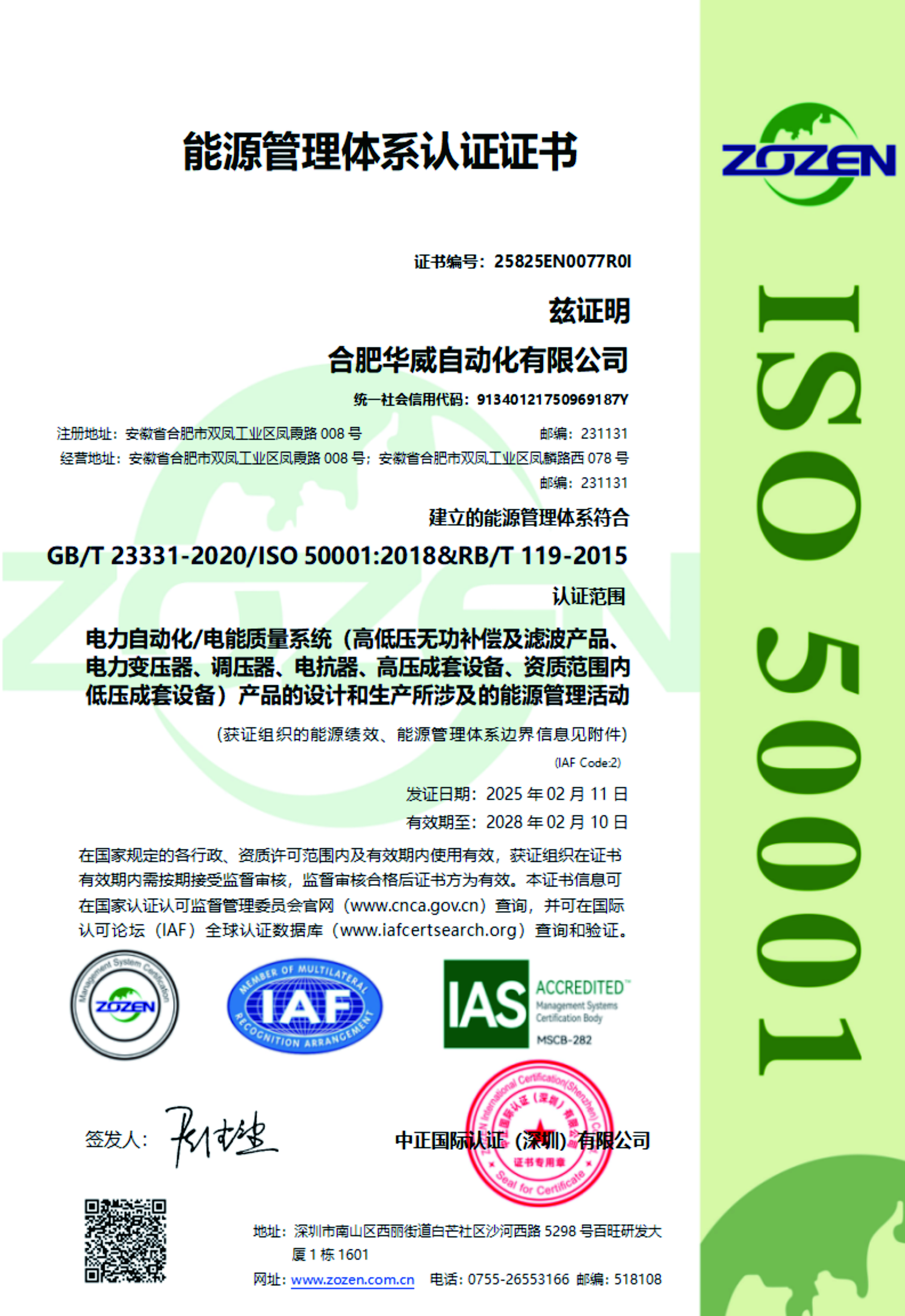 能源管理体系认证证书